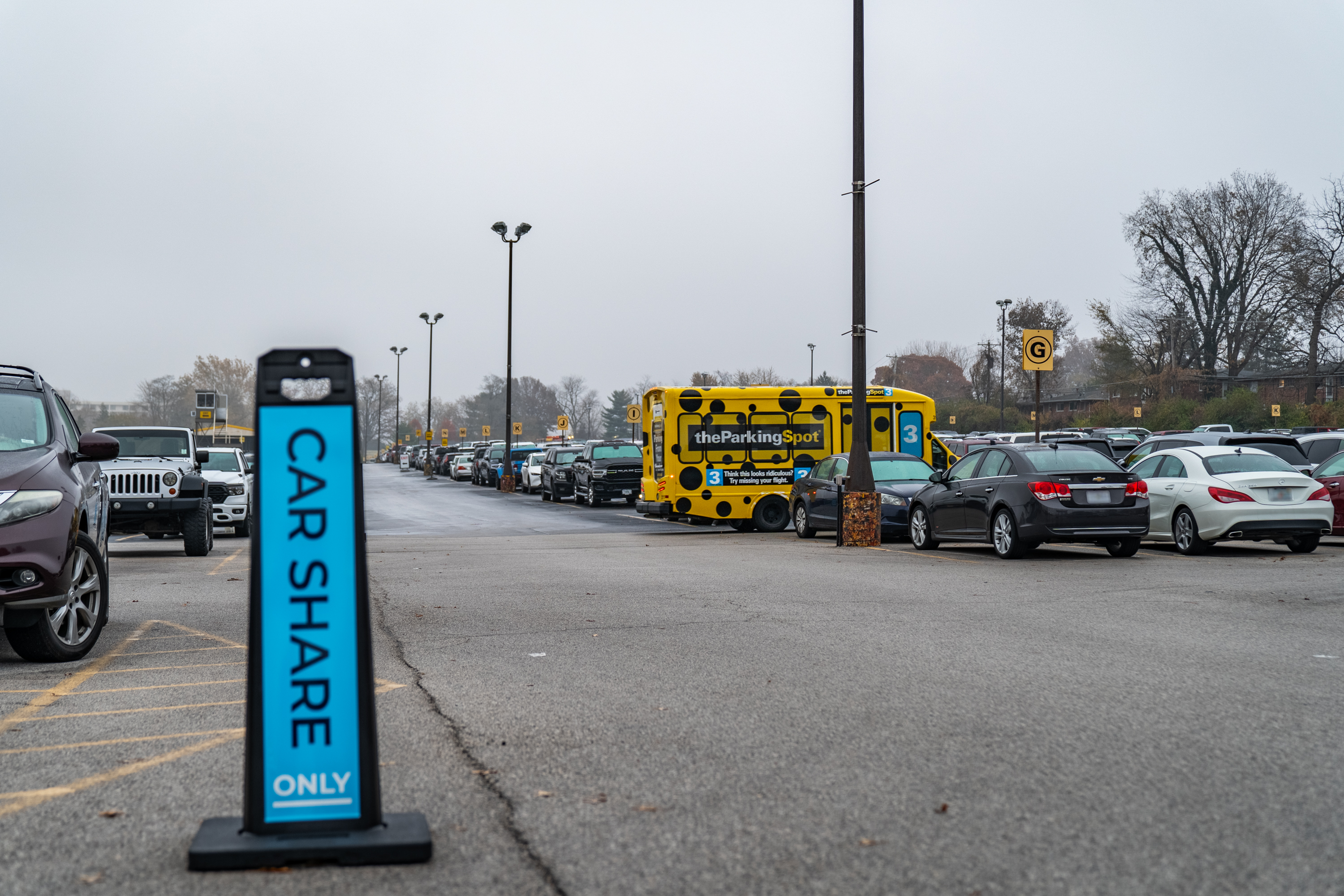 Staging of vehicles must be in spaces in car share areas, not perpendicular to traffic markings.